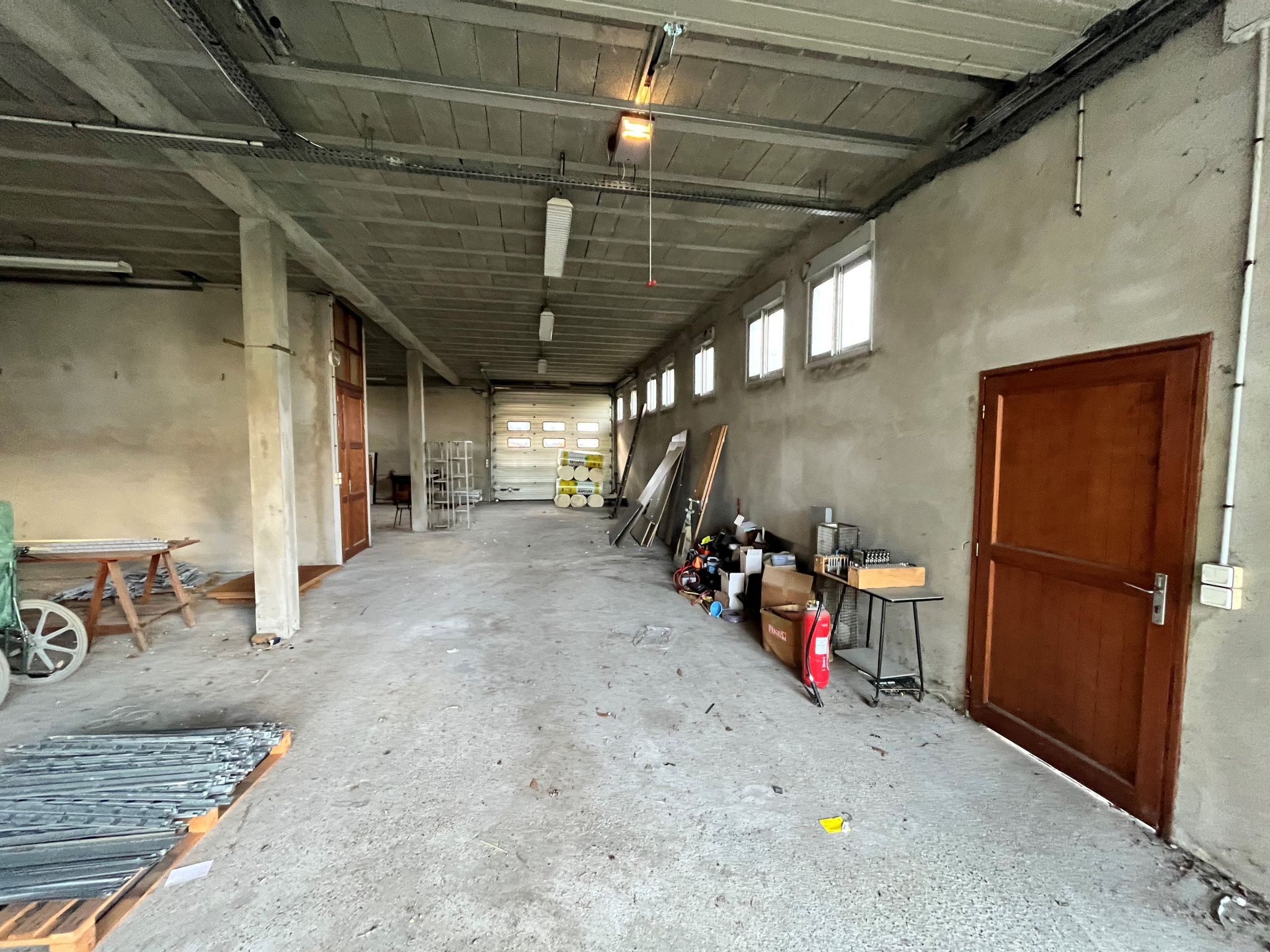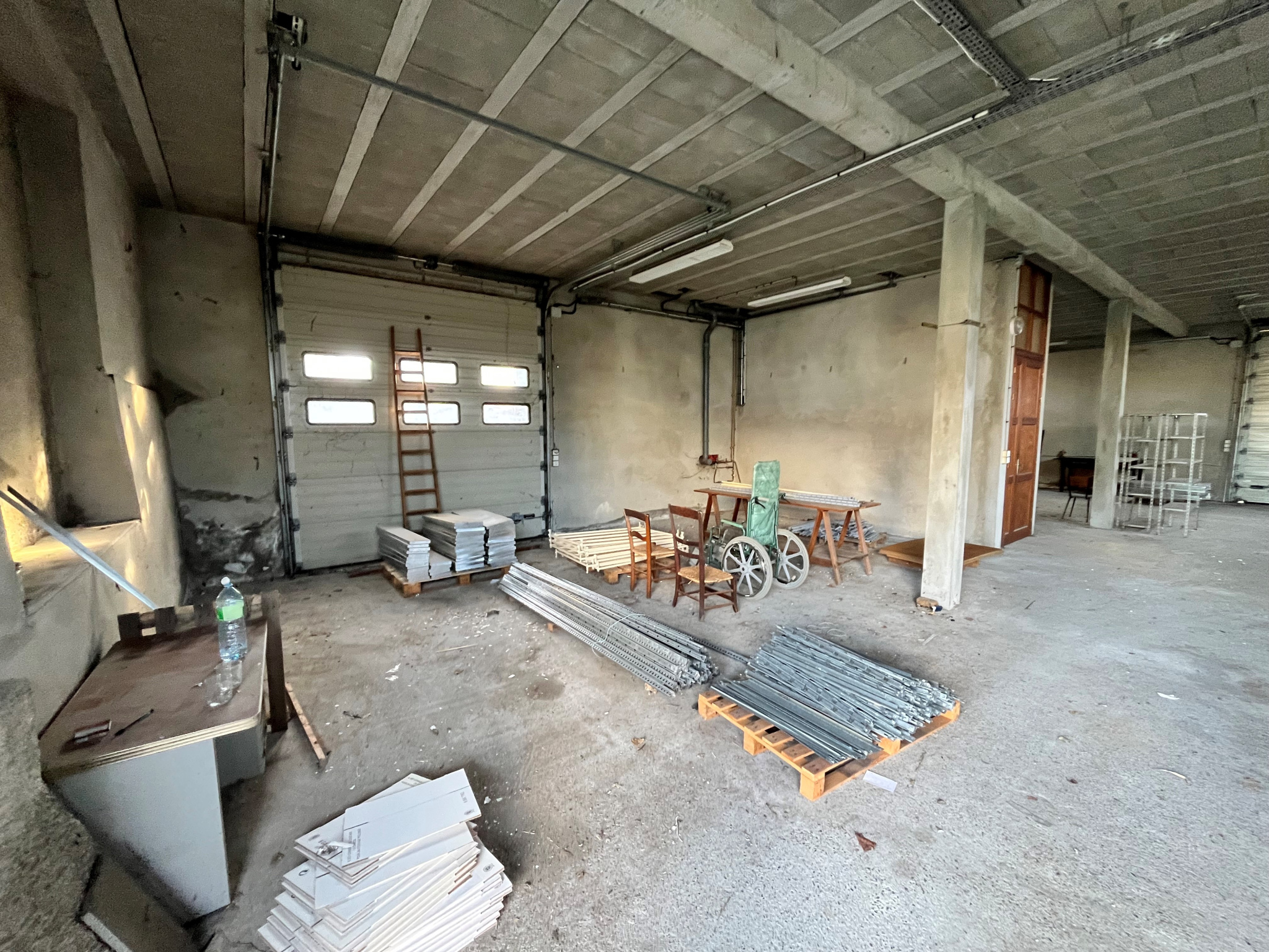 Le rez-de-chaussée de 180 m² est dédié au stockage avec une grande hauteur sous plafond et une accessibilité optimale avec 3 portes sectionnelles.